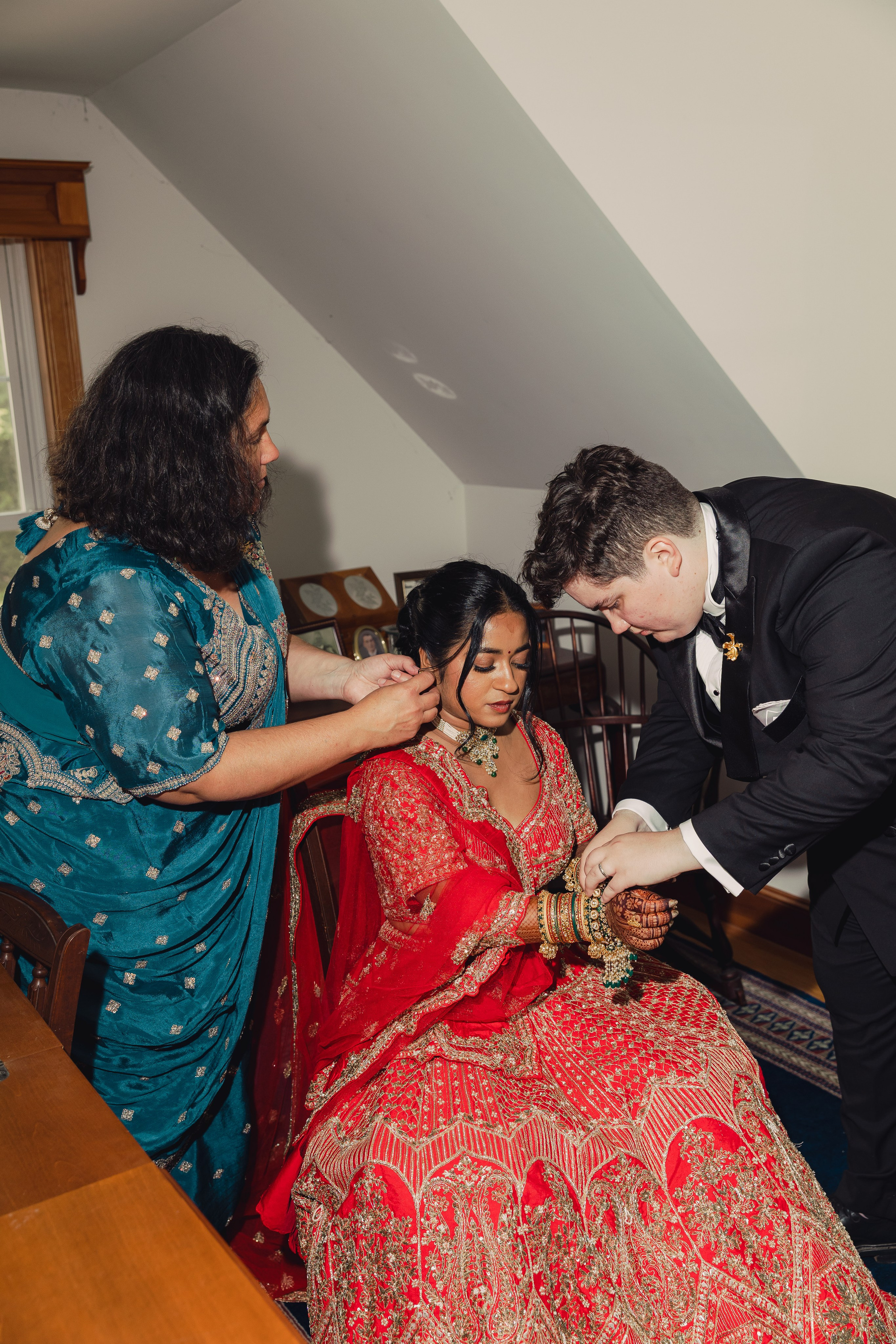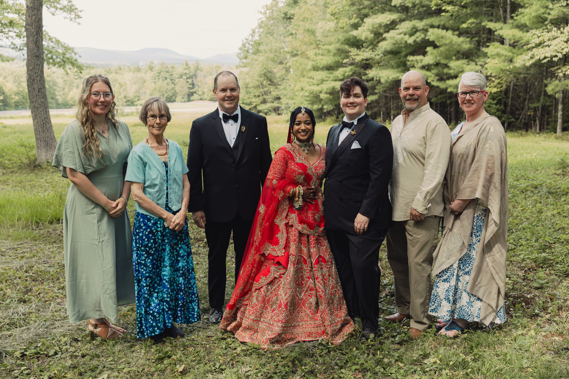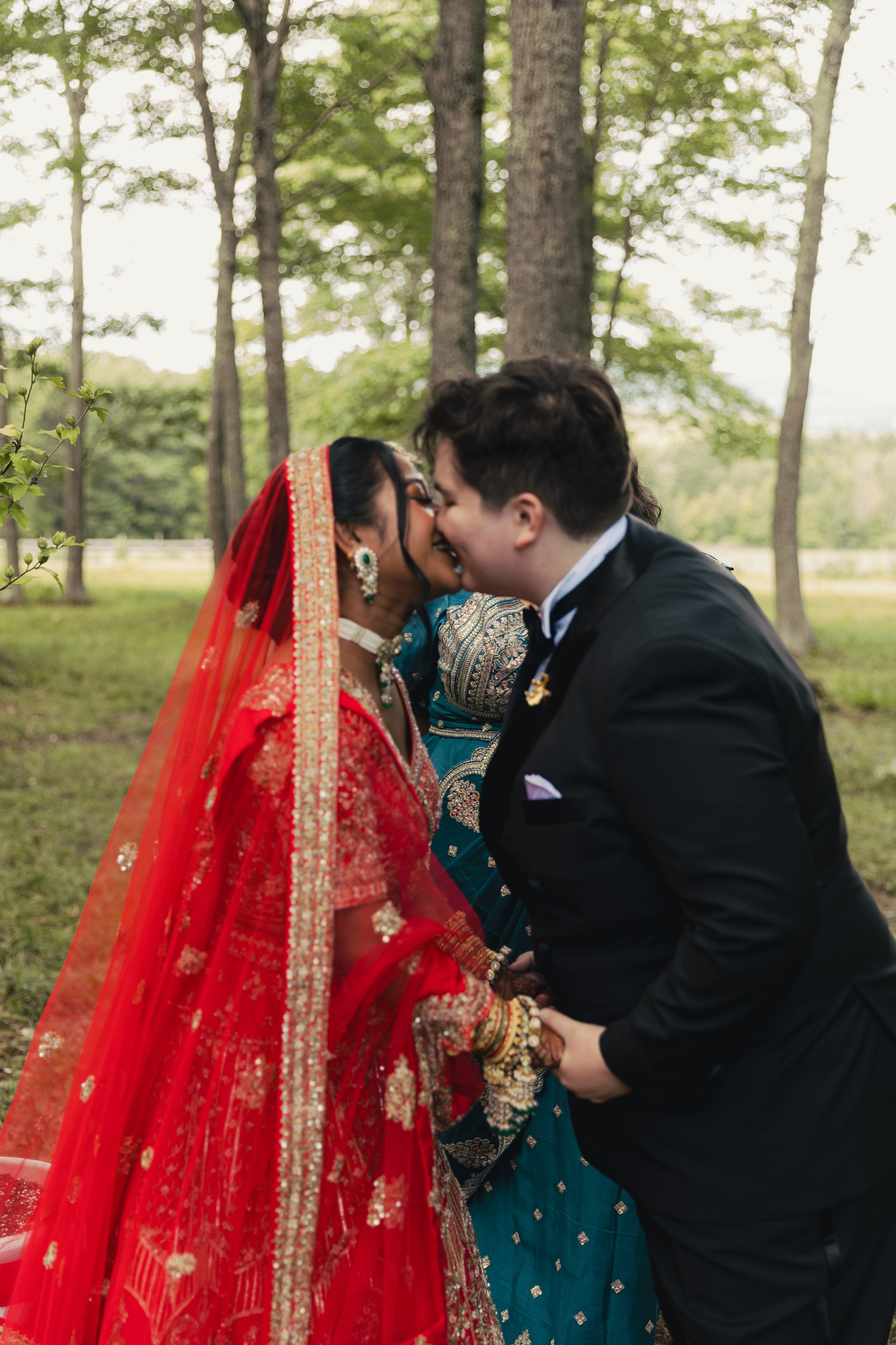 This was the final day of a three-day multicultural, two-bride wedding in New England, thoughtfully centered on love, culture, and connection. The celebration began with a joyful Haldi ceremony in Boston, followed by a meaningful Muslim Nikah ceremony on day two, and wrapped up with an intimate final day of celebration in New Hampshire, surrounded by close friends and family.