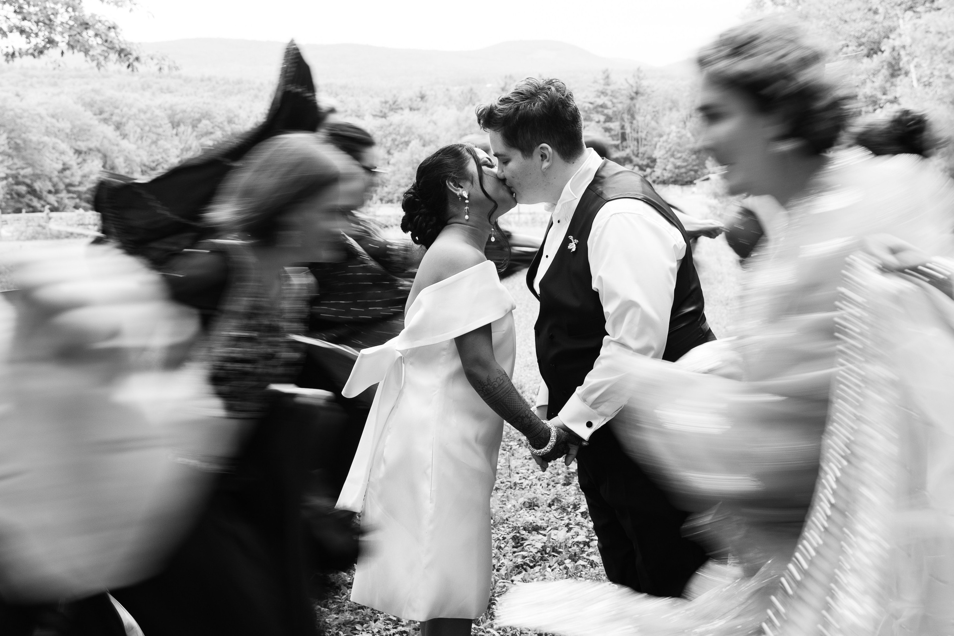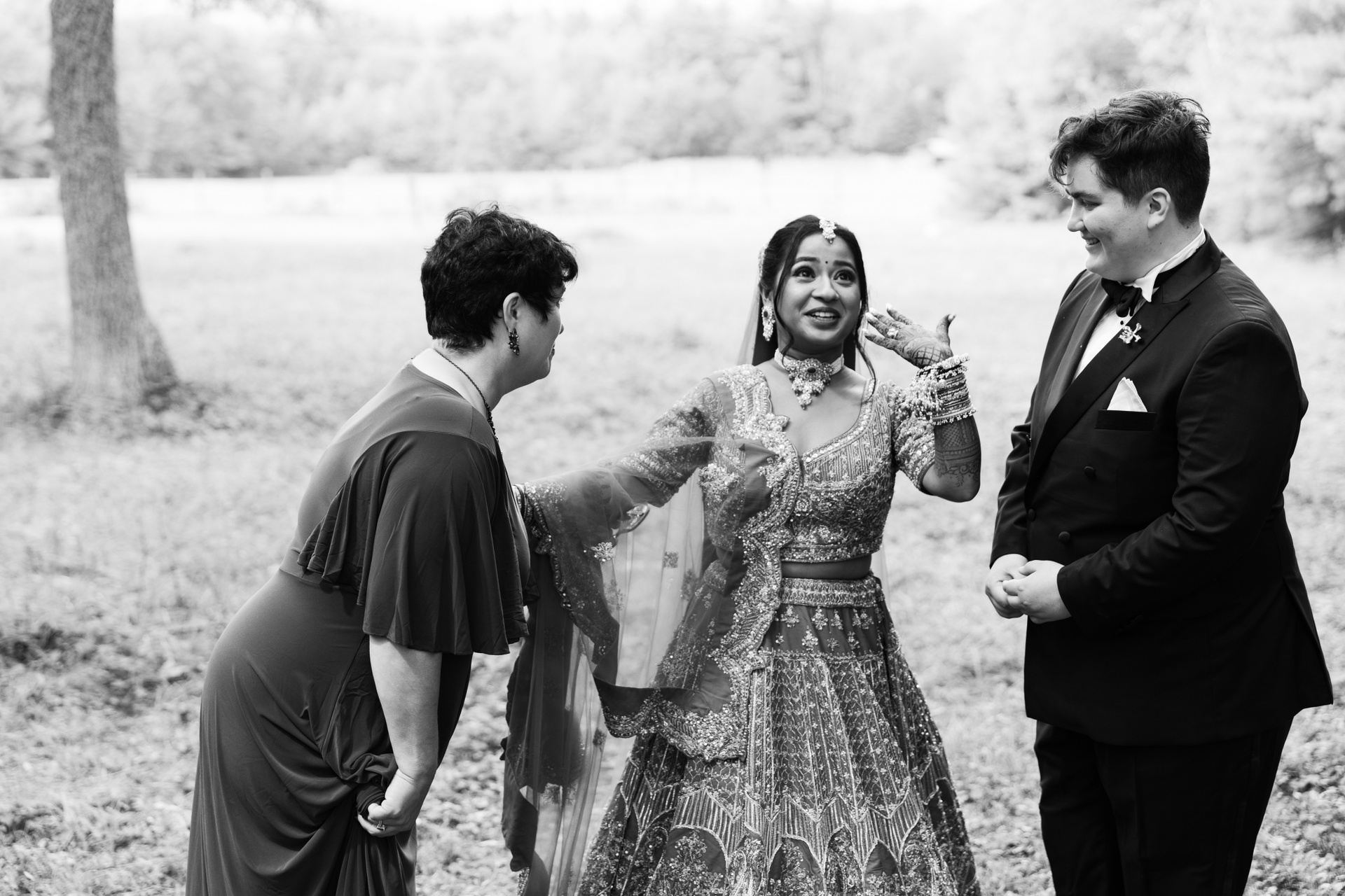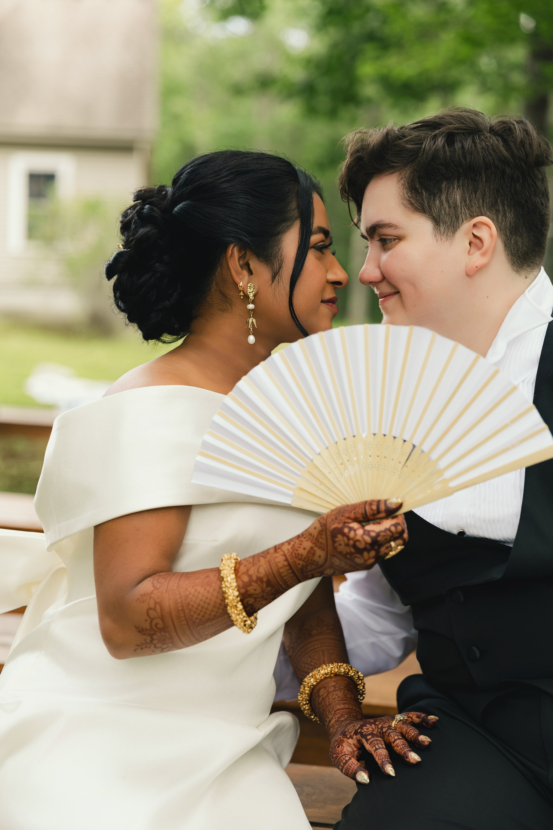 This was the final day of a three-day multicultural, two-bride wedding in New England, thoughtfully centered on love, culture, and connection. The celebration began with a joyful Haldi ceremony in Boston, followed by a meaningful Muslim Nikah ceremony on day two, and wrapped up with an intimate final day of celebration in New Hampshire, surrounded by close friends and family.