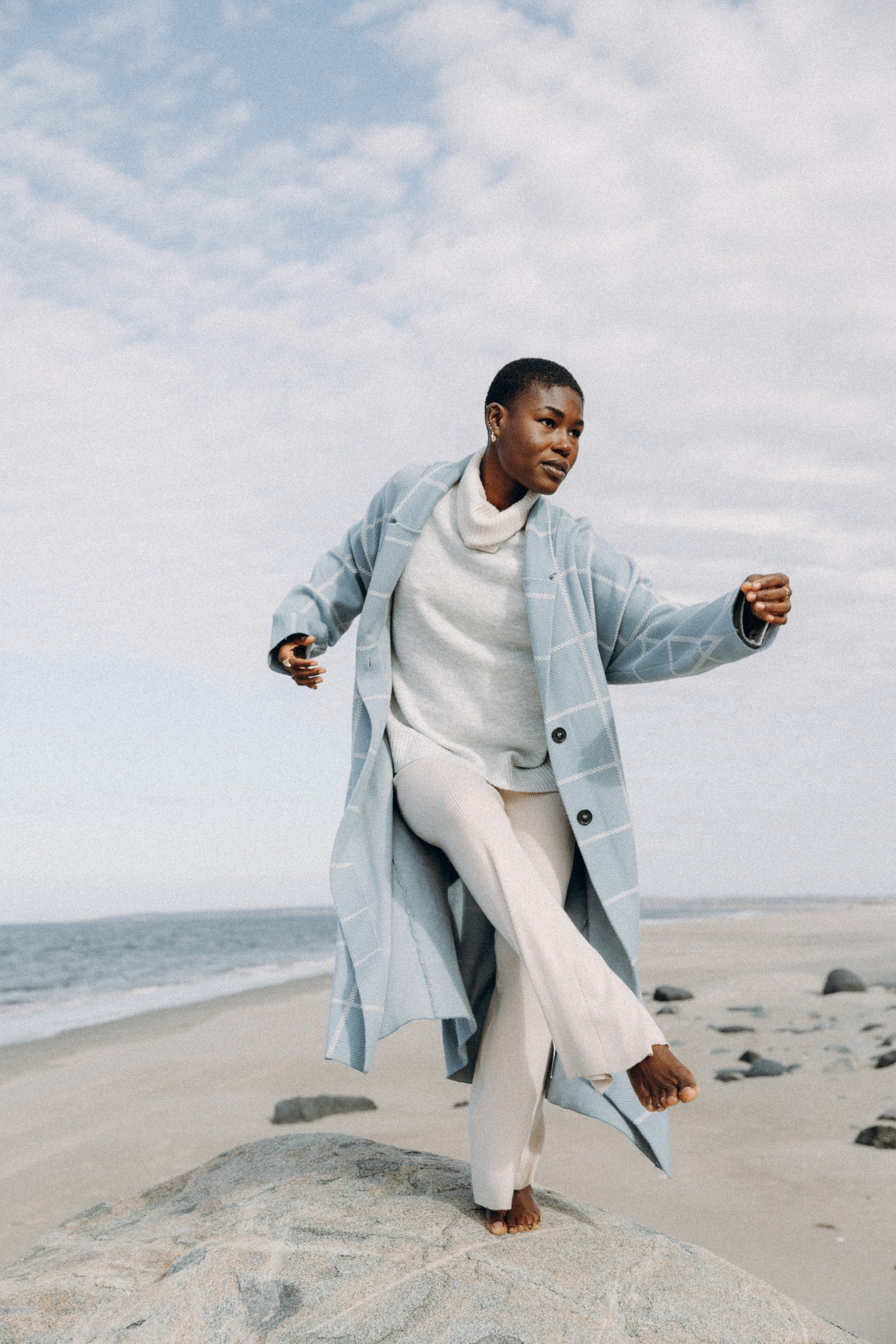 An example of a minimalistic, natural portrait session at Crane Beach, Massachusetts, with soft light and ocean views. Perfect for solo portraits, model tests, or branding photography.